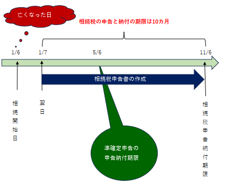 たとえば1月6日に亡くなった方の相続税の申告納付期限は、11月6日です。